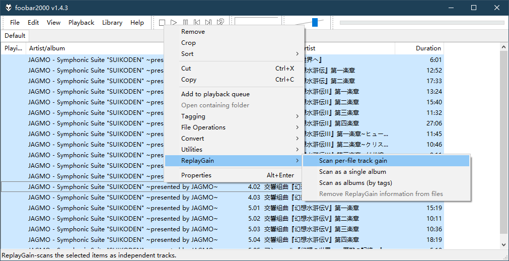 将所有音乐扫描并打上回放增益 tag 后,再也不用担心下一首歌震破耳膜了。