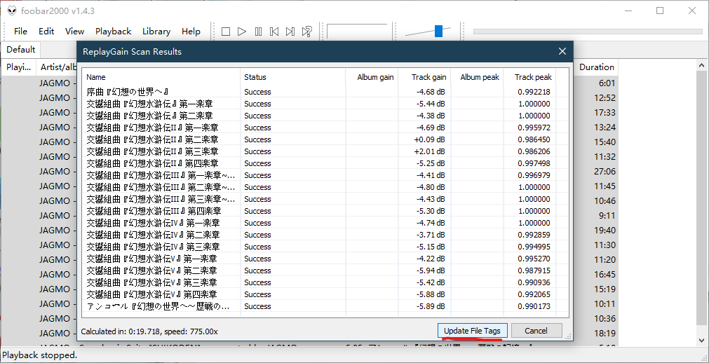 待扫描结束后,点击 Update File Tags ,将回放增益数据写入文件 Tag :