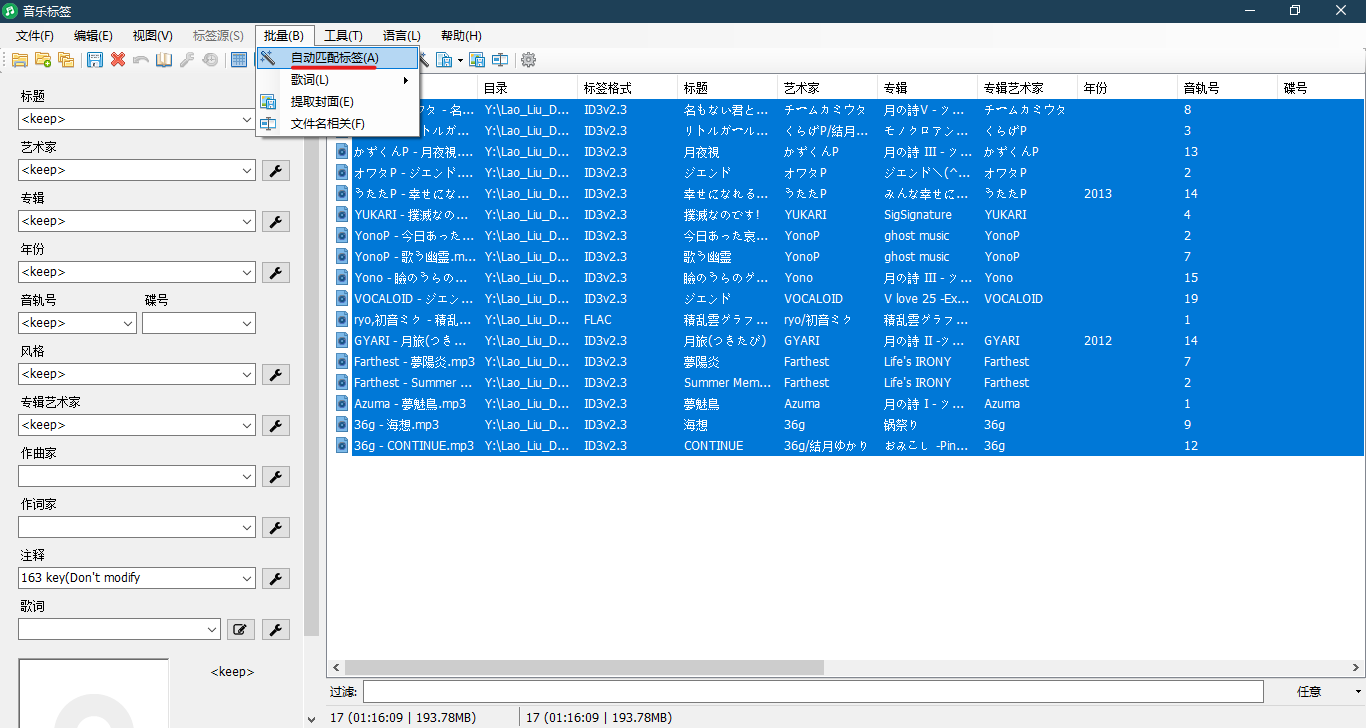 导入一批歌曲后,选择 自动匹配标签 :(如下图)