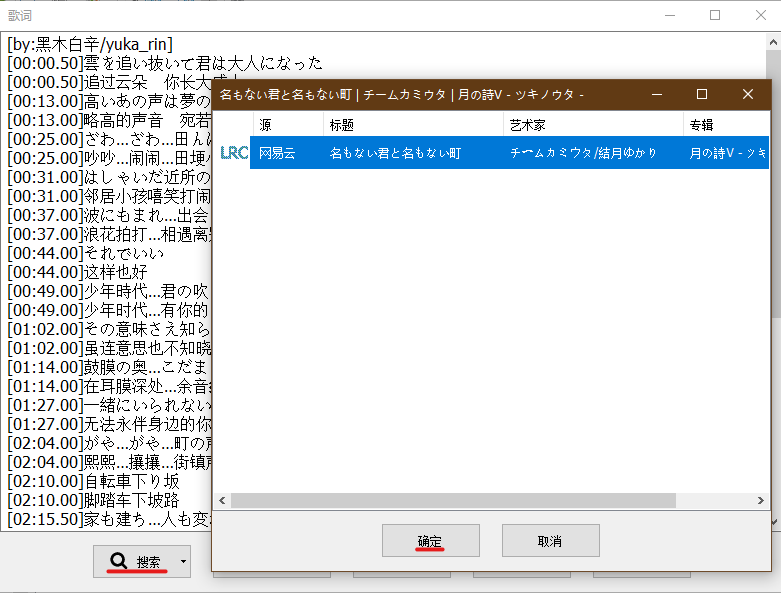 如下图所示,选择并查看歌词,若有误可以手动搜索: